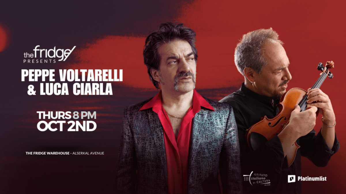 Dubai is set for a night of Italian magic as singer-songwriter Peppe Voltarelli and violin virtuoso Luca Ciarla bring their unforgettable performance to The Fridge Warehouse, Alserkal Avenue. 🌟