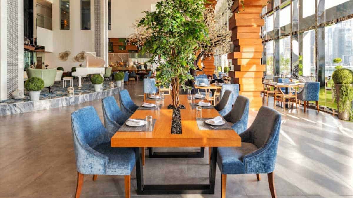 Business lunch Remote working Casual dining Couples Canal views Burj Khalifa views WiFi Hotel dining