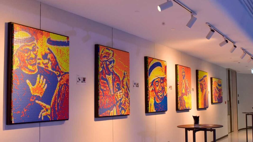 The project folds into a broader practice – CubixArt – that Khalfan founded to explore mosaic portraiture with an engineered twist. His background in engineering shows up in the planning: colour maps, precise counting, and a workflow that’s almost algorithmic. But there’s craft too – hand-placing cubes, checking alignments, and making on-the-spot adjustments so that the final face reads as human rather than mechanical. Khalfan’s work has been shown across the UAE and picked up recognition on notable stages, which helps explain why this hotel solo show feels like a quiet, well-earned moment rather than a flash in the pan.
